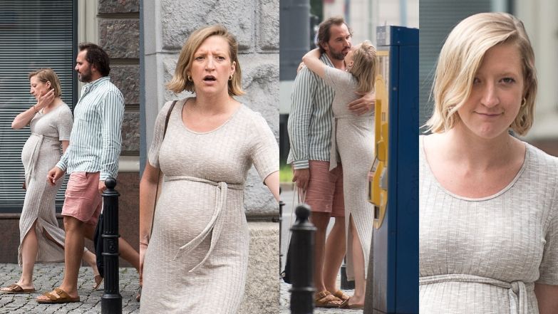Ciężarna Lara Gessler stroi miny i wymienia czułości z partnerem podczas spaceru ulicami Warszawy (ZDJĘCIA)