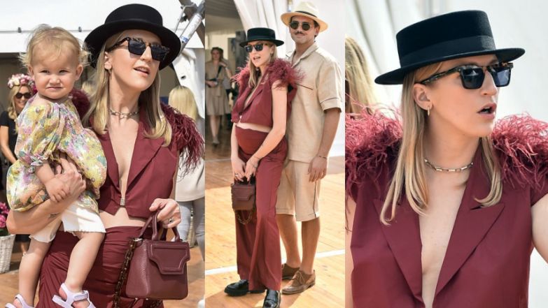 Lara Gessler, jak przystało na rasową celebrytkę, postanowiła zadać szyku na corocznym evencie w Gałkowie. Ciężarna Lara ubrała się w bordowy komplet z piórami na ramionach, pod który najwyraźniej nie założyła stanika. Udana stylizacja?