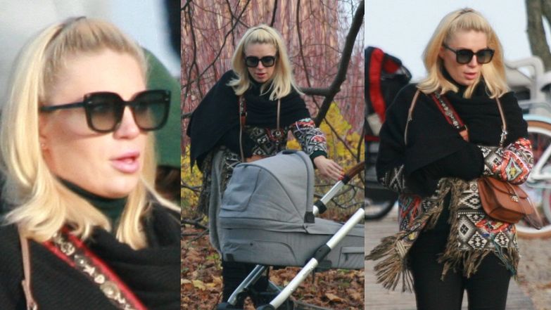 Ciężarna Martyna Gliwińska pcha wózek na spacerze ze znajomymi. Nie było z nią Jarka Bieniuka...