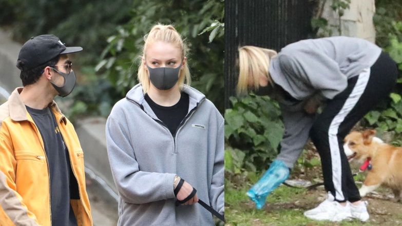 Ciężarna Sophie Turner wypełnia obowiązki odpowiedzialnej właścicielki czworonogów na spacerze z Joe Jonasem (ZDJĘCIA)