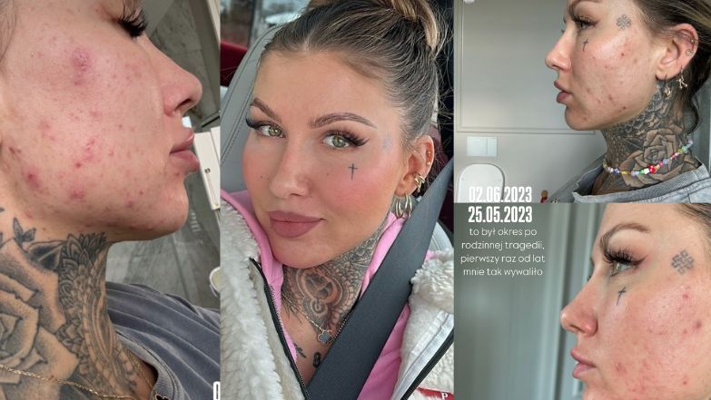 W 2023 roku, wraz z tą rozpaczą, ten trądzik przyszedł taki, że... wyglądałam bardzo źle. Tłumaczyłam sobie, że jest to spowodowane stresem, bo to był tragiczny czas - ja od środka umarłam. Potrzebowałam czasu, żeby odżyć na nowo, i po kilku miesiącach cera zaczęła się poprawiać. Znowu nic z tym nie robiłam. W lipcu/sierpniu znowu mnie wysypało, ale to był trądzik, jakiego nigdy nie miałam. To były bolące bulwy - nie mogłam leżeć ani na jednej, ani na drugiej stronie. Był na żuchwie, policzkach, koło uszu, na szyi... To było tak bolesne, że nigdy wcześniej, mimo że żyję z trądzikiem od kilkunastu lat, czegoś takiego nie doświadczyłam - dodała.