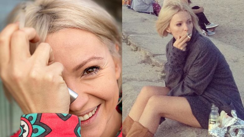 "Tylko nie wrzucaj tego zdjęcia z papierosem! Ładniejsze ci zrobiłam" - czytamy pod fotografią, na której Szelągowska raczy się dymkiem.
