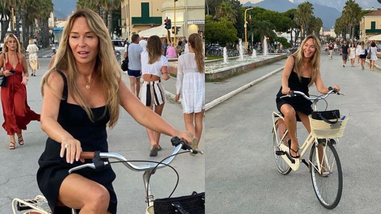 Dostojna Joanna Przetakiewicz eksponuje zgrabne udo, pedałując w "małej czarnej" (ZDJĘCIA)