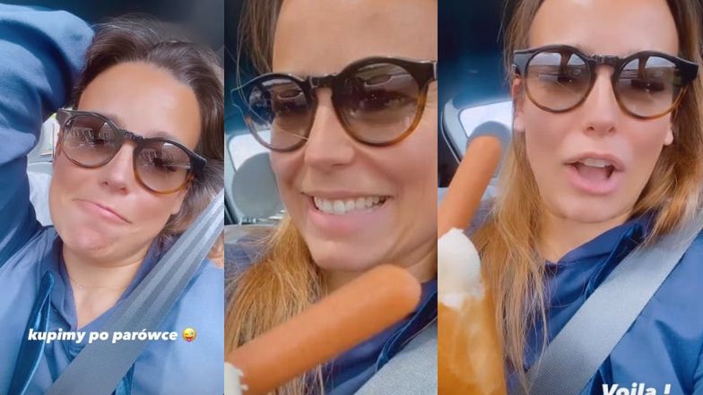Po chwili pokazała nawet "hot-doga", jakiego samodzielnie przygotowała w aucie.