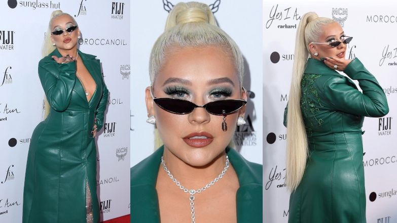 41-letnia Christina Aguilera wmaszerowała na czerwony dywan The Daily Front Row Fashion Awards w obcisłym płaszczu ze skóry w kolorze morskiej zieleni. Widać, że nadal "ma pazura"?