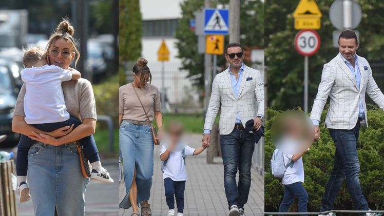 Dumni rodzice Małgorzata Rozenek i Radosław Majdan odbierają Henryka po pierwszym dniu w przedszkolu (ZDJĘCIA)
