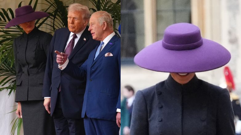 Dystyngowana Melania Trump skrywa twarz pod wielkim kapeluszem podczas spotkania z królem Karolem III. Stylowo?