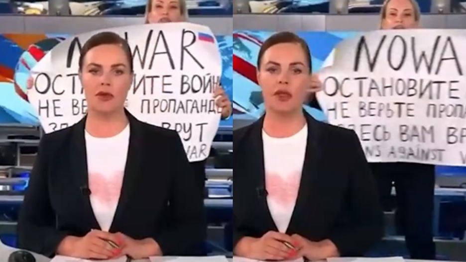 W poniedziałek wieczorem doszło do dość zaskakującej sytuacji w rosyjskim Pierwyj kanale, która jest dowodem na to, że mamy do czynienia nie tylko z wojną w sensie militarnym. Gdy prezenterka tamtejszego serwisu informacyjnego zapowiadała kolejną relację, za jej plecami nagle ukazała się inna dziennikarka stacji, Marina Owsiannikowa. Kobieta postanowiła zaprotestować przeciwko działaniom Rosji w Ukrainie.