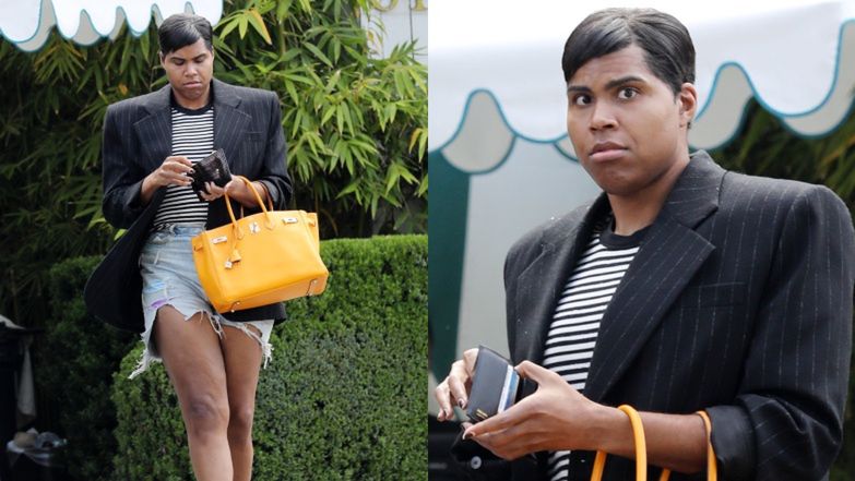 EJ Johnson swoim zwyczajem wbił się w uwydatniające zgrabne nogi szorty, tym razem prezentując ich jeansową, "poszarpaną" odsłonę. Dopasował do nich biały t-shirt w czarne poziome paski, ciemną marynarkę oraz sandały na słupku. Barwową wyrazistość stylizacji zapewniła rzucająca się w oczy pomarańczowa torebka. W takiej odsłonie celebryta opuścił popularny klub San Vicente Bungalows, przenosząc się na lunch do jednej z pobliskich knajp w West Hollywood.