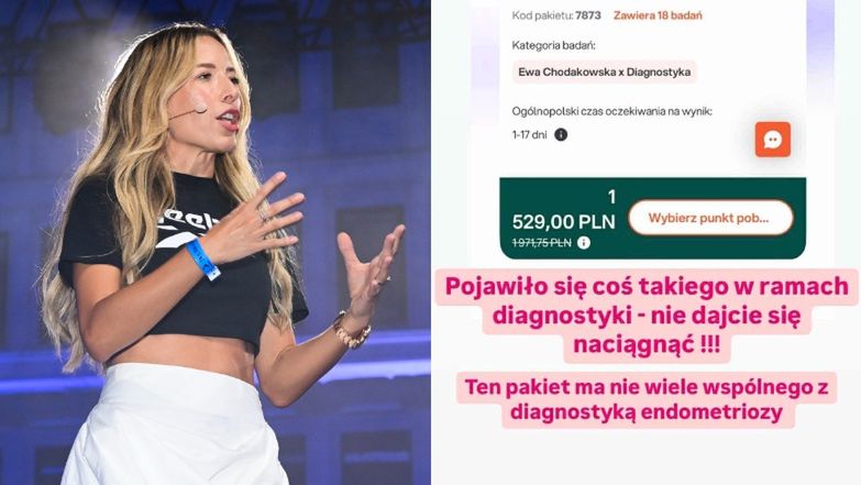 Ewa Chodakowska rozpoczęła współpracę z firmą Diagnostyka i firmuje swoim nazwiskiem pakiet badań mający wykrywać endometriozę. Środowisko lekarzy podkreśla w sieci, że proponowane przez nich testy nie mają przełożenia na prawidłową diagnozę choroby. Trenerka postanowiła się wytłumaczyć, a ostatecznie oferowany zestaw zniknął z oferty.