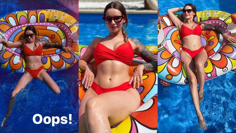 Na kolejnych zdjęciach piosenkarka zaprezentowała gotową do lata figurę. Ubrana w czerwony kostium leży na kolorowej, dmuchanej lamie. Zdystansowana celebrytka zamieściła też fotki, na którym widzimy ją w dość niezręcznej pozycji, gdy zsuwa się z dmuchańca. Ewelina podzieliła się też z fanami "nieułożonym" kadrem, na którym ktoś znajomy utrwalił ją z nieidealnej i nie do końca fotogenicznej pozycji.