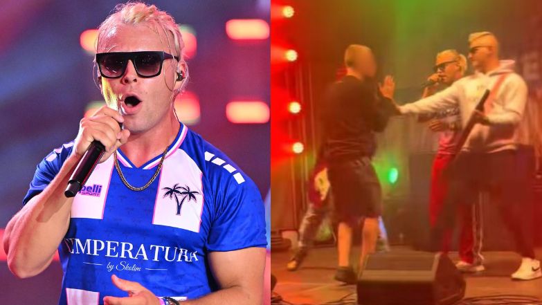 Fan wtargnął na scenę podczas koncertu Skolima. Ochroniarze szybko POWALILI go na ziemię