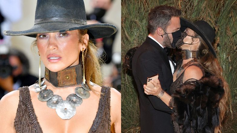 Gala MET 2021. "Kowbojka" Jennifer Lopez u boku Bena Afflecka eksponuje swoje "walory" w brązowej sukni Ralpha Laurena (ZDJĘCIA)
