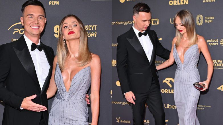 Gala Mistrzów Sportu 2025. Jerzy Mielewski i jego żona zadają szyku na ściance. Młodsza o 9 lat Patrycja wyeksponowała głęboki dekolt
