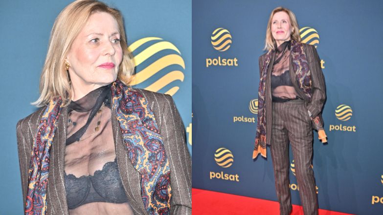 Grażyna Szapołowska znalazła się w gronie gwiazd, które zaproszono na ramówkę Polsatu. Aktorka postawiła na garniturowy komplet, pod którym dostrzegamy prześwitującą koszulę, a to dopiero początek. Choć nieźle poszalała, to udało jej się zachować klasę.