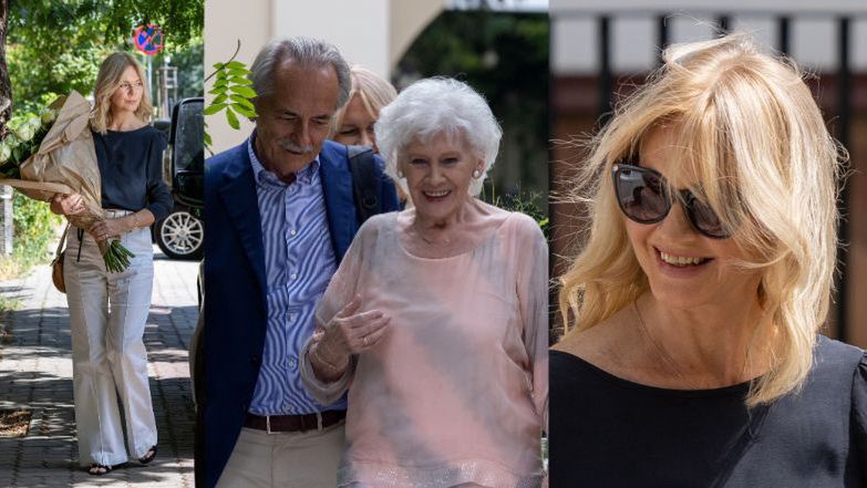Jubilatka szła z Adamem Torbickim pod rękę. Za nimi podążała uśmiechnięta Grażyna.