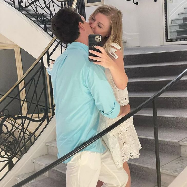 Bardzo chciałam to zdjęcie tu mieć - czuję się tu jak gwiazda Hollywood. Nieskromnie myślę, że nakręcą kiedyś o nas film - podpisała kadr z choinką w tle.