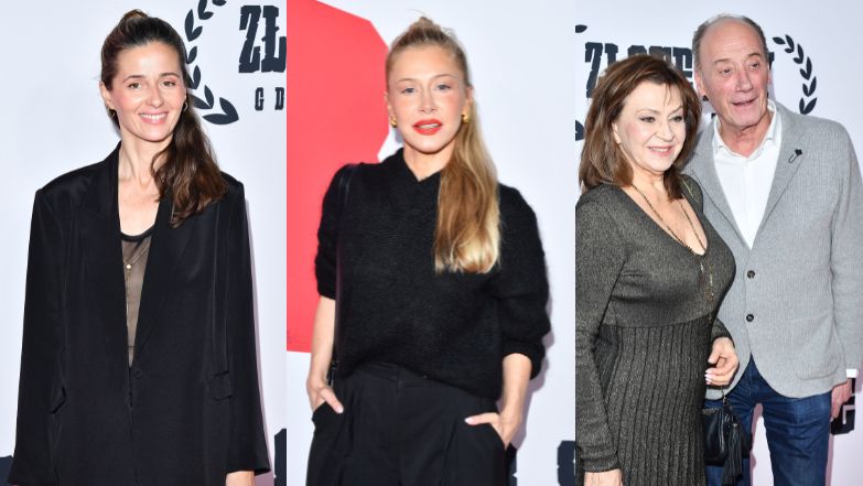 Na zdjęciach ze ścianki można było dostrzec najpopularniejsze twarze rodzimego show biznesu. Pojawiła się między innymi Katarzyna Warnke, która zaprezentowała się w eleganckim total looku. Aktorka miała na sobie czarne, szerokie spodnie, które zestawiła z oversizowym swetrem. Do tego dobrała szpilki z połyskującym szpicem. Z kolei Agnieszka Grochowska zaprezentowała się w obszernej marynarce, pod którą dostrzegamy półprzeźroczysty top.