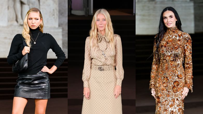 Modowy misz-masz na prezentacji kolekcji Gucci: szykowna Demi Moore, mroczna Lila Moss i Gwyneth Paltrow cała w logo