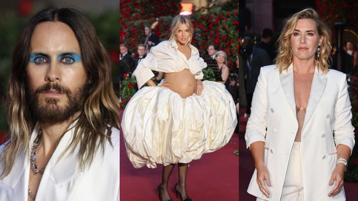 Wszyscy zaproszeni dołożyli wszelkich starań, by wpasować się w "teatralny" dress code i wyróżnić się na tle innych gości imprezy, co wcale nie było łatwym zadaniem. Największą gwiazdą wieczoru niewątpliwie była Sienna Miller, która trzy tygodnie temu ogłosiła światu, że spodziewa się dziecka z młodszym o 13 lat kolegą po fachu, Olly'm Greenem. Aktorka odsłoniła ciążowy brzuch w pełnej krasie w widowiskowym komplecie od Schiaparelli składającym się z kusego topu i bufiastej spódnicy. Na wydarzeniu pojawili się także m.in.: Anna Wintour, Kate Winslet, Jared Leto, Rita Ora, Winnie Harlow, Emilia Clark, Georgia May Jagger czy księżniczka Beatrycze.