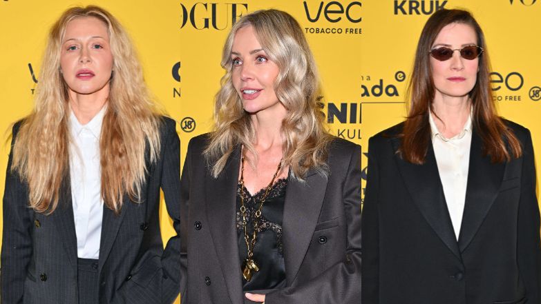 Motywem przewodnim w stylizacjach były bezsprzecznie garnitury. Postawiła na niego między innymi Agnieszka Woźniak Starak, która podkręciła look, dobierając do niego koronkowe body i sporo biżuterii. A także Katarzyna Warnke, uzupełniająca stylizację białym golfem.