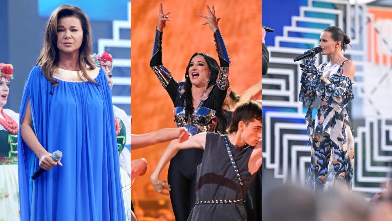 Gwiazdy na koncercie TVP: Wisząca nad sceną Justyna Steczkowska, Edyta Górniak w długiej sukni i kolorowa Natalia Szroeder