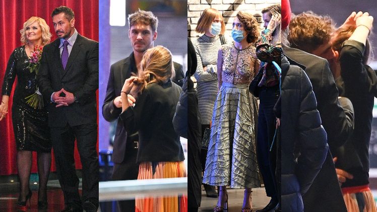 Gwiazdy po premierze "Kogel Mogel 4". Mikołaj Roznerski CAŁUJE w policzek swoją EKS, z którą ma 10-letniego syna (ZDJĘCIA)