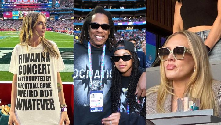 Gwiazdy śledzą popisy Rihanny na finale Super Bowl: Adele, Jay-Z z córką, Cara Delevingne, Elon Musk... (ZDJĘCIA)