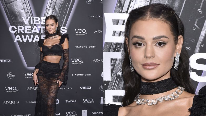 Influecnerka pojawiła się na wydarzeniu Vibeza przyodziana w czarne koronki. Stylizacja Honoraty Skarbek składała się prześwitującej spódnicy do ziemi i finezyjnego topu, który został wykonany z takiego samego materiału. Dość odważnie odsłaniający ciało look 31-latki uzupełniła kryształkowa biżuteria oraz czarne buty na wysokim obcasie. Honka tego wieczoru spełniła się również w roli prowadzącej wydarzenie.