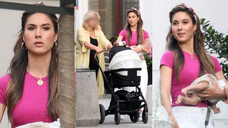 Ida Nowakowska spaceruje z mamą uliczkami Warszawy, dzielnie niosąc syna w ramionach (ZDJĘCIA)