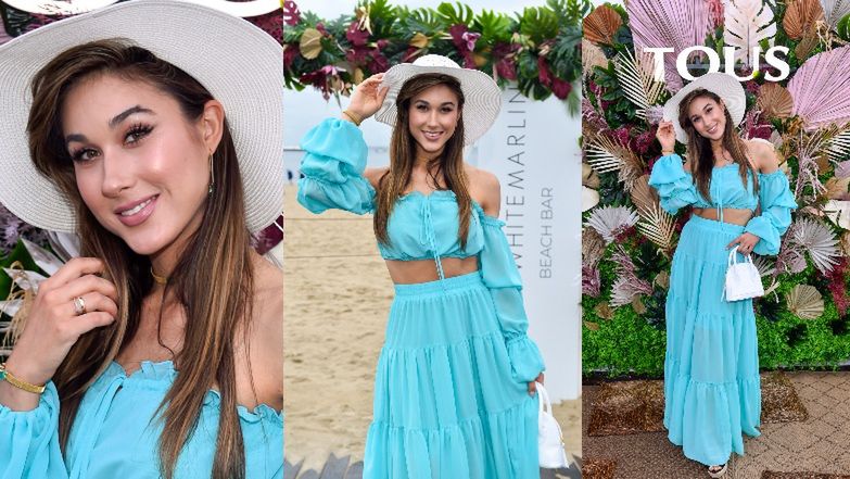 Na premierze Ida pojawiła się jednak sama. Celebrytka postawiła na zwiewną kreację w odcieniach błękitu, na którą składał się krótki, odsłaniający brzuch top oraz długa spódnica. Całość uzupełniła dodatkami - białym kapeluszem i torebką w tym samym kolorze.
