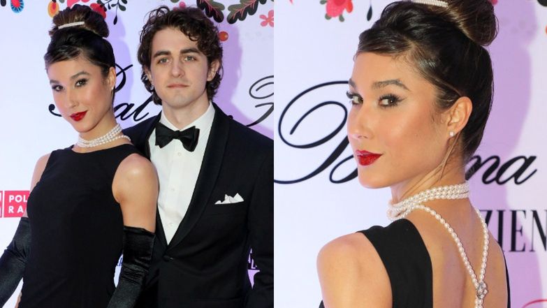 Oboje dumnie pozowali na ściance w nietypowych kreacjach, które dostosowali do tematyki balu, czyli "Dwór i Chata Polska", a wydaje się, że stylizacja Nowakowskiej inspirowana była nawet Audrey Hepburn z filmu Śniadanie u Tiffany’ego.