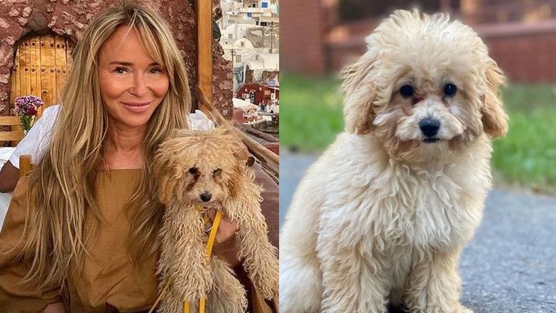 Projektantka mody pochwaliła się w sieci zdjęciem z pupilką wykonanym na Santorini. Fani prędko dostrzegli niepokojące zacieki pod oczami pieska.