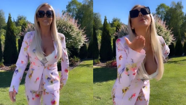 Monika Chwajoł zamieściła nową odsłonę mocno krytykowanej stylówki komunijnej, ponownie prowokując do burzliwej wymiany zdań. Nie musiała długo czekać, by zrealizować swój jakże ambitny cel. Zamieściła w sieci kolejne nagranie, podczas którego pewnym krokiem przechadza się po ogrodzie w odważnej marynarce z wielkim dekoltem.