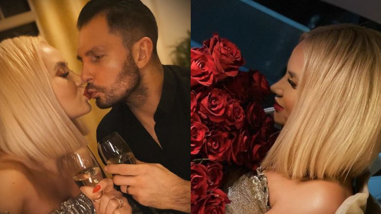 Do wpisu załączone były zdjęcia dokumentujące* czuły pocałunek popijających szampana kochanków* oraz ogromny bukiet róż, który Macudzińska otrzymała najpewniej z okazji rocznicy.