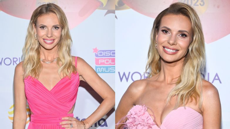 Tego dnia gwiazda zaprezentowała się w dwóch spektakularnych kreacjach. Specjalistka od ślubów zapozowała m.in. w pudrowo-różowej sukni do ziemi z odkrytymi ramionami i głębokim dekoltem. Stylizację uzupełniła wiszącymi kolczykami i bransoletką z rzemykiem.