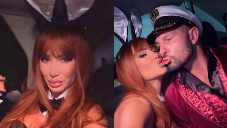 Izabela Macudzińska mknie na imprezę w stroju króliczka Playboya. Ukochany celebrytki przebrał się za... Hugh Hefnera