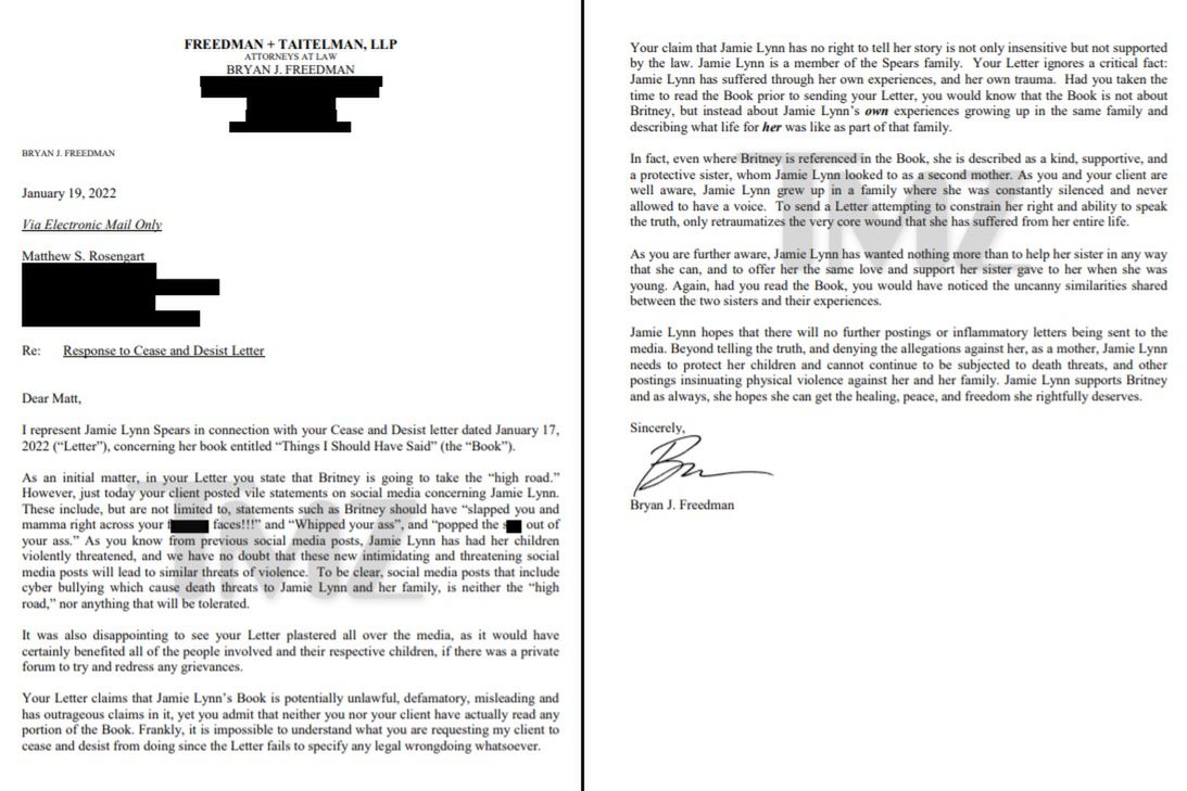Prawnik Matthew S. Rosengart w imieniu Britney wystosował do Jamie Lynn pismo z żądaniem zaprzestania wykorzystywania siostry do promocji książki i zagroził pozwem.