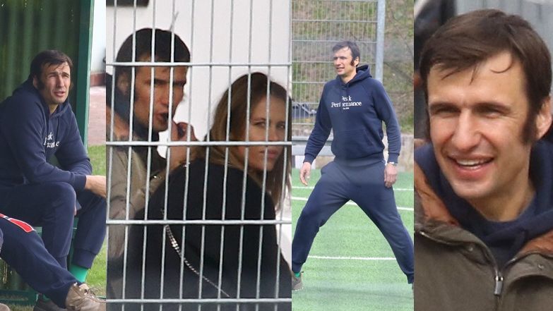 Pactwa przyprowadziła syna Jarka, Jasia. Bieniuk skorzystał z okazji i pograł z nim w piłkę.