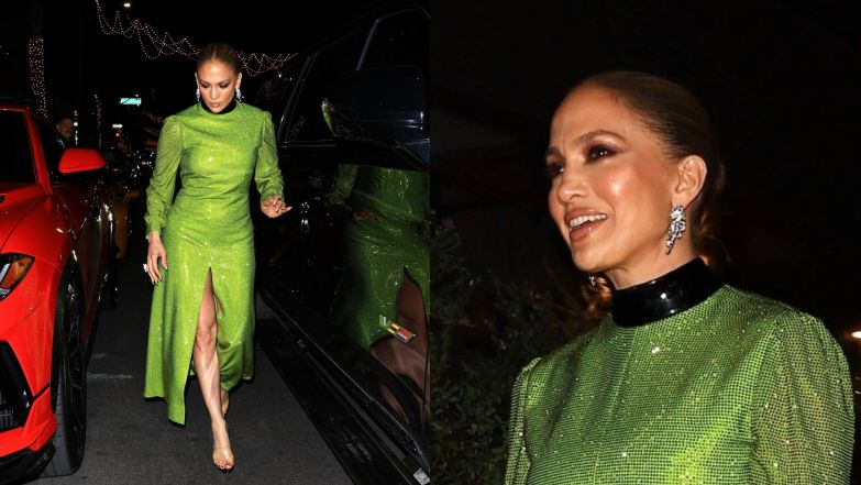 Jennifer Lopez została sfotografowana, jak zmierzała na urodziny swojego menedżera. Tego wieczoru wszechstronnie uzdolniona celebrytka odziała się w mieniącą się w blasku fleszy suknię w kolorze zieleni.