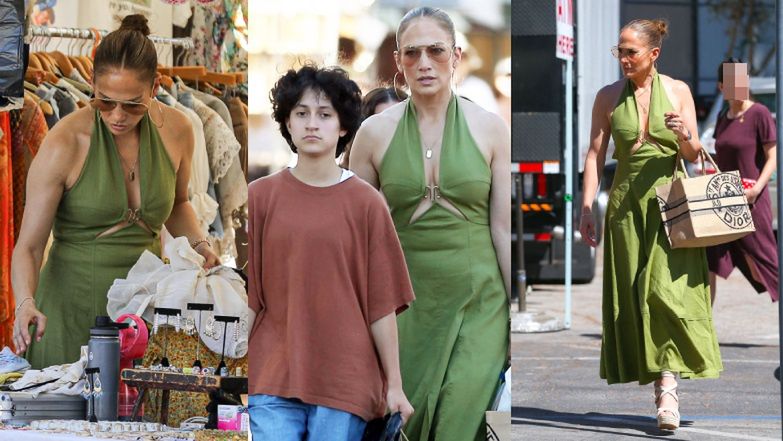 53-letnia gwiazda buszowała pomiędzy stoiskami, chętnie przyglądając się wystawionymi na nich przedmiotami. Jej latorośl wyglądała na nieco znudzoną szałem zakupowym mamy. Aktorka nawet na casualowe wyjście nie zapomniała o modnej stylizacji i dodatkach. Lopez pomykała w butach na koturnach i zielonej sukience.