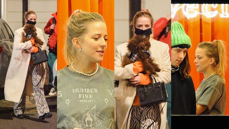 Kirschner od stóp do głów ubrana była we "własne" projekty: "numerologiczny" t-shirt, pomarańczową bluzę zdobioną haftem inspirowanym jogą oraz spodnie w zebrowy print.
