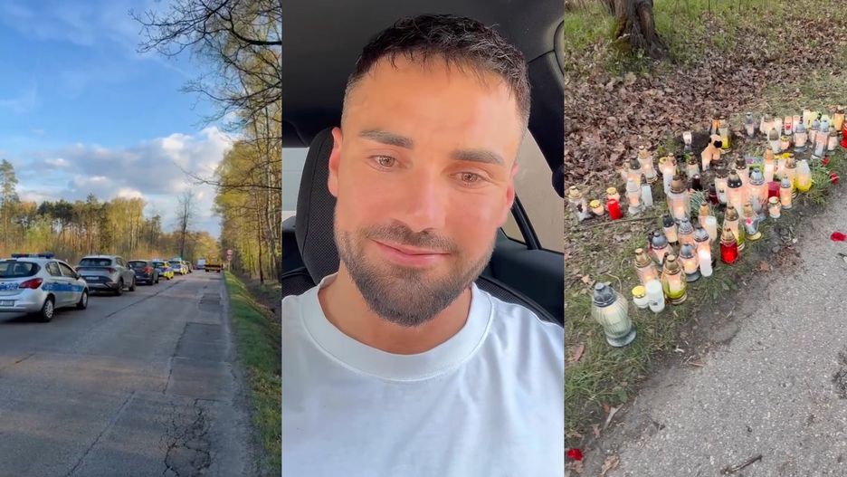Jest nagranie z miejsca wypadku Łukasza Litewki. Przy drodze ustawiono mnóstwo zniczy (WIDEO)
