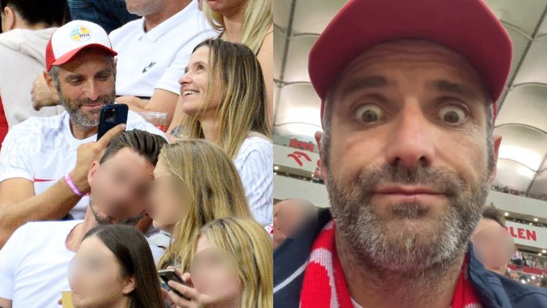 Joanna Koroniewska i Maciej Dowbor PRZYLECIELI na mecz Biało-Czerwonych. Prezenter nie był zachwycony... (ZDJĘCIA)