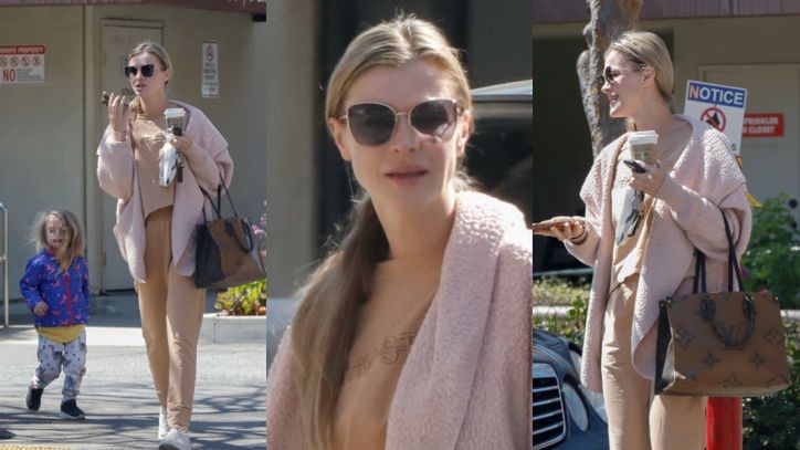 Joanna Krupa w dresie i z torbą za 13 tysięcy pędzi z córką do swojego mercedesa z kawką w dłoni (ZDJĘCIA)