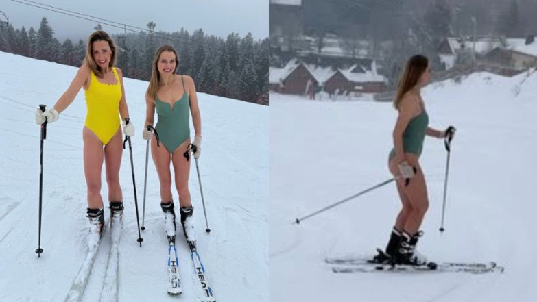 Joanna Moro i Anna Gzyra śmigają na nartach w kostiumach kąpielowych