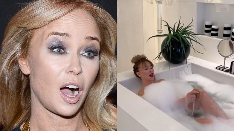 Kochani, cześć! Pytaliście mnie, jak się szczotkuję i o całe moje rytuały i domowe spa, no i proszę bardzo. To jest taka zwykła szczotka do ciała i jedziemy z dołu do góry, i tak całe ciało. Ja w ogóle najchętniej biorę dwie szczotki w rękę i jadę, słuchajcie, stereo po całym ciele od dołu do góry - mówi pełna entuzjazmu milionerka podczas masowania ciała w wannie pełnej piany.