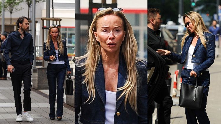 W czwartek założycielka domu mody La Mania została przyuważona przez stołecznych paparazzi, gdy dumnie kroczyła chodnikiem w towarzystwie syna, Aleksandra, zmierzając w stronę wartego 1,7 miliona złotych bentleya. 54-latka, jak zwykle prezentowała się wytwornie i stylowo: do jeansowego kompletu składającego się ze spodni-dzwonów i marynarki dopasowała biały t-shirt, czółenka i torbę Saint Laurent za 5,7 tysiąca złotych. Za to Aleksander odział się w granatową koszulę, czarne spodnie od garnituru i białe tenisówki.