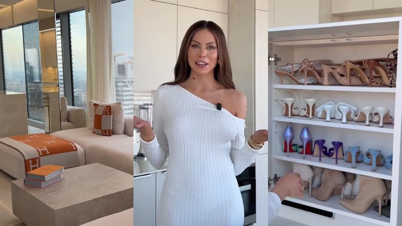 Milionerka zaprezentowała też kącik wypoczynkowy zdominowany przez białą, niezwykle wygodną (wierzymy na słowo) sofę ozdobioną narzutami i poduszkami z logo Hermes. Mieliśmy okazję podejrzeć też zawartość jej wypełnionej po brzegi garderoby, sypialni z okrągłym łóżkiem oraz marmurowej łazienki, w której do samego końca nie mogła zdecydować się, czy woli pluskać się w wannie, czy jednak brać szybkie prysznice. Jak można było się spodziewać, ostatecznie połączyła obydwa rozwiązania.