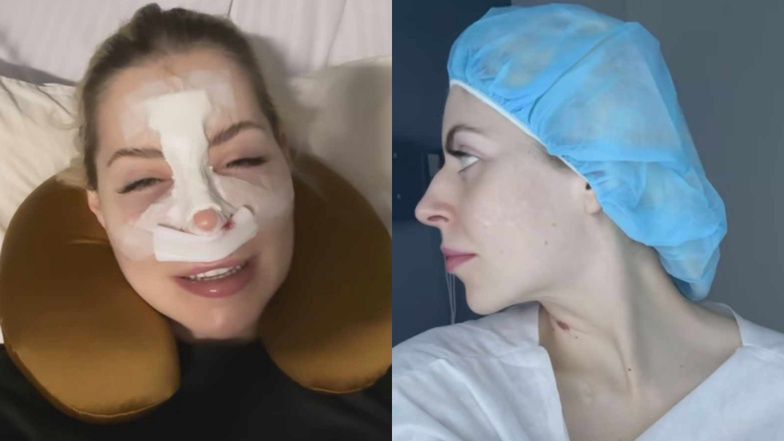 Jak na razie Julia nie pokazała jeszcze efektów po zabiegu. Pochwaliła się za to, jak wyglądała na chwilę przed operacją. Kolejne zdjęcia w relacji na Instagramie przedstawiają ją już w bandażach i plastrach.
